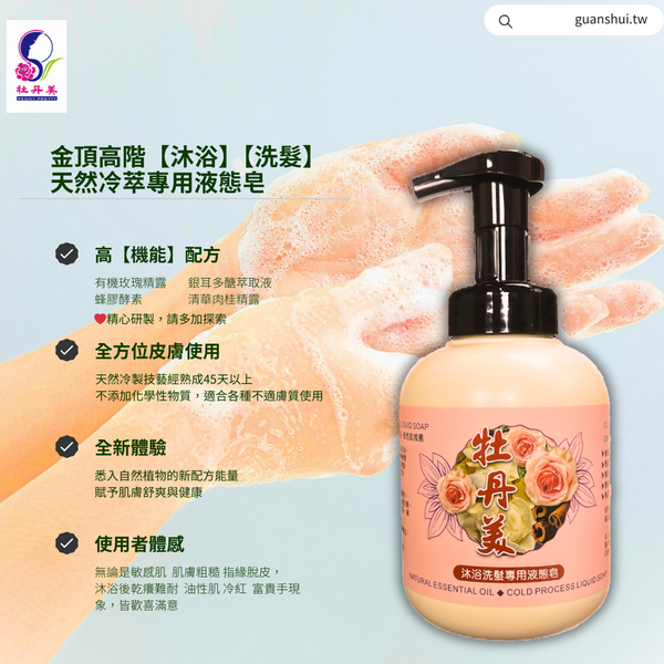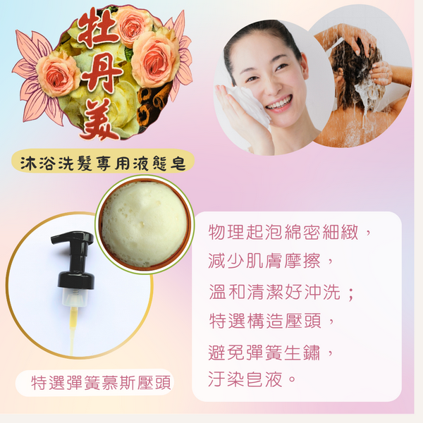 牡丹美 金頂高階 【沐浴 】【洗髮 】天然冷萃專用液態皂 400ml